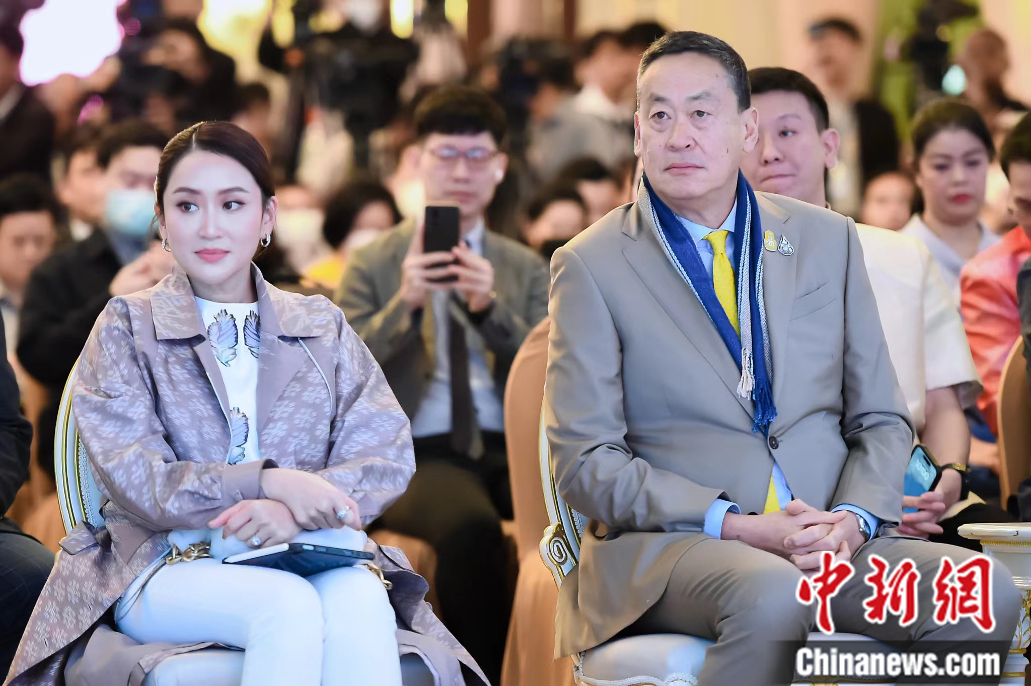 泰國總理賽塔(右)和泰國國家軟實力戰略委員會(hui) 副主席貝東(dong) 丹(左)等出席啟動儀(yi) 式。趙婧楠攝