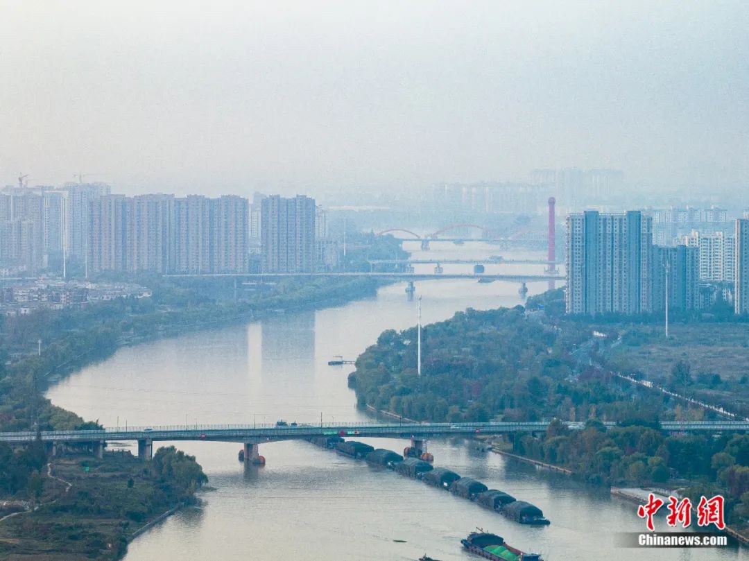 2023年10月29日清晨,貨船行駛在京杭大運河江蘇省宿遷段。柴軍(jun) 委 攝