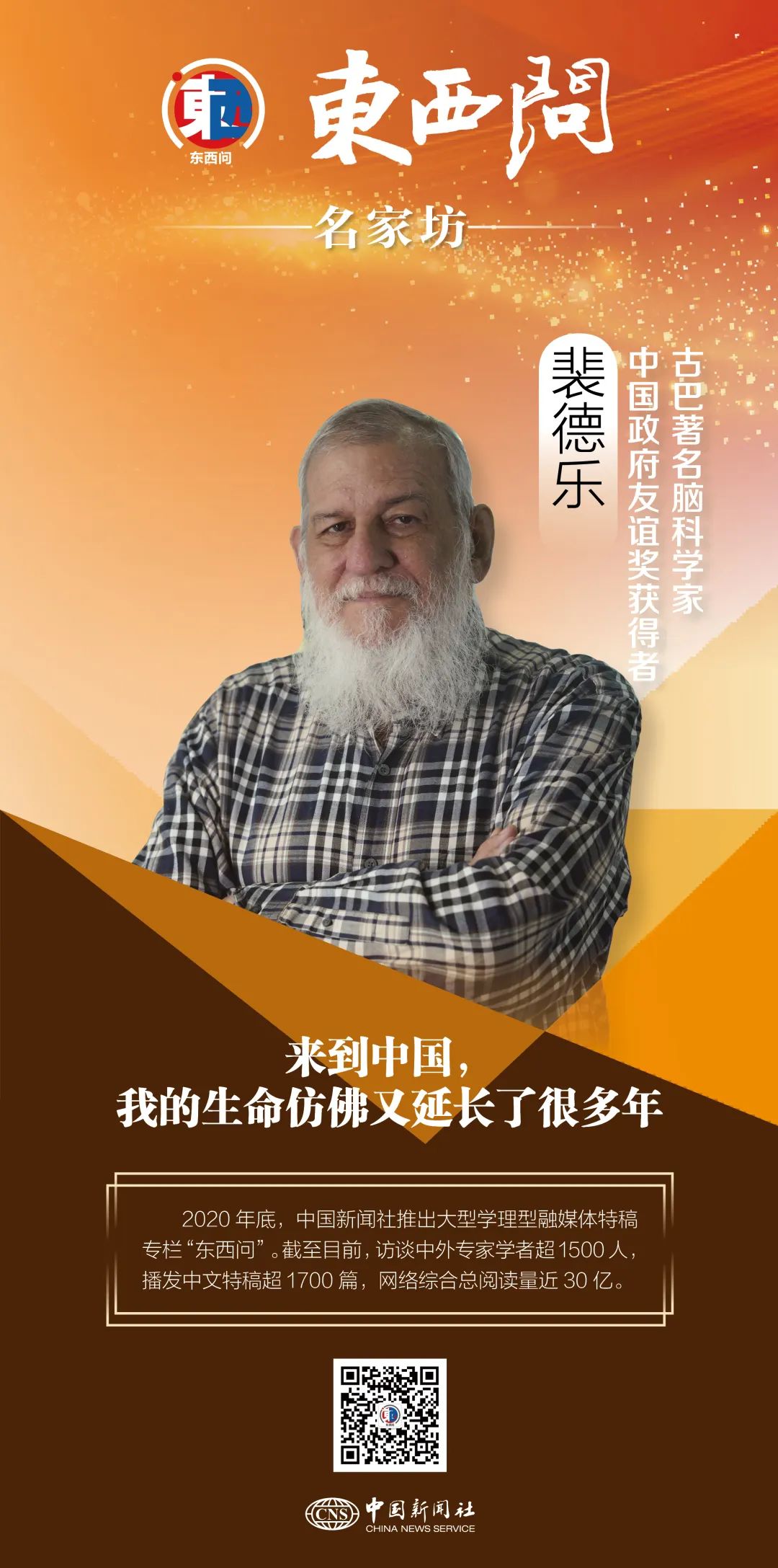 作為(wei) 古巴著名腦科學家,裴德樂(le) 是世界定量電生理技術的奠基人,也是“中國政府友誼獎”“天府友誼獎”獲得者。如今,73歲的他正致力於(yu) 在共建“一帶一路”倡議之下,聯合全球腦科學家,共享大腦數據,革新腦科學。