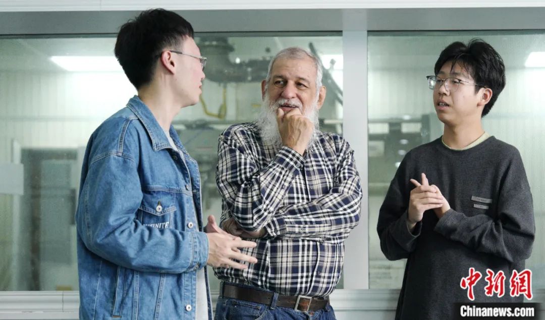 2023年11月,利用實驗室午間休憩間隙,裴德樂(le) 在電子科技大學接受了中新社“東(dong) 西問”采訪。身著紅色衛衣、藍色牛仔褲的裴德樂(le) 精神矍鑠,言語間中氣十足。