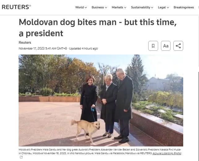 中新網11月17日電 據路透社援引摩爾多瓦媒體(ti) 消息,當地時間16日,摩爾多瓦總統桑杜的愛犬在總統官邸咬傷(shang) 了到訪的奧地利總統範德貝倫(lun) 。