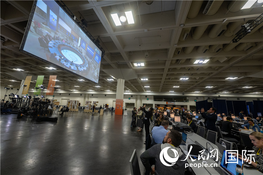 當地時間11月16日,美國舊金山,在APEC國際媒體(ti) 中心,媒體(ti) 記者忙碌工作。