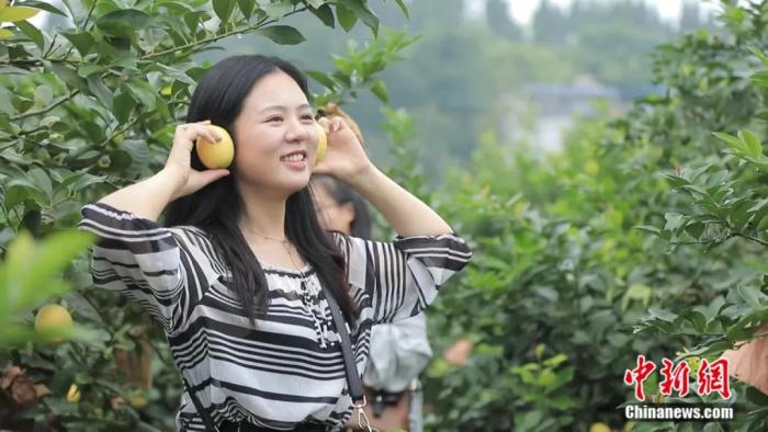 圖片圖為(wei) 市民在采摘檸檬。潼南區委宣傳(chuan) 部供圖