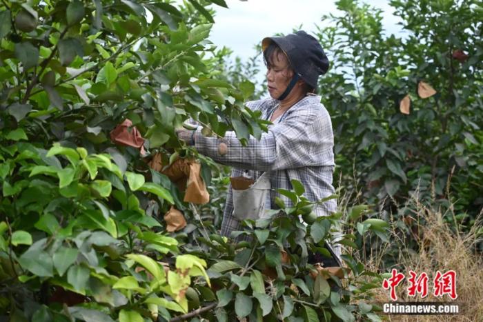 圖片圖為(wei) 果農(nong) 正在給檸檬套袋。張旭 攝
