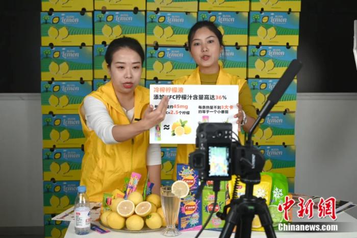 圖片圖為(wei) 工作人員通過直播銷售檸檬。張旭 攝