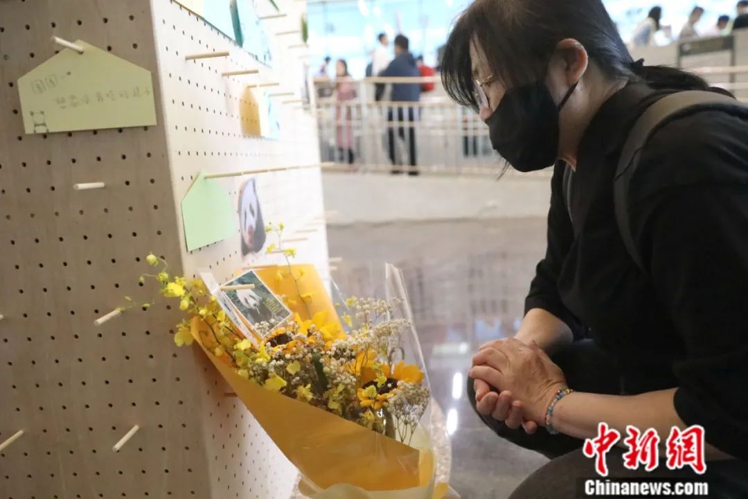 不少家長帶著小朋友來到現場參加活動,小朋友在卡片上慢慢畫出心中熊貓的模樣,並寫(xie) 下想對“團團”說的話。有的民眾(zhong) 還送來鮮花,表達對“團團”的喜愛和懷念之情。