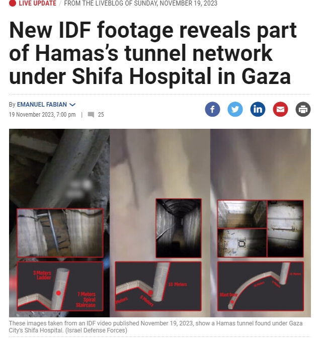 中新網11月20日電 據《以色列時報》報道,當地時間19日,以色列國防軍(jun) 和以色列國家安全總局(辛貝特)發布了最新視頻,視頻顯示了巴勒斯坦伊斯蘭(lan) 抵抗運動(哈馬斯)在加沙希法醫院下方的部分隧道網絡。以軍(jun) 稱哈馬斯在該醫院設有一個(ge) 主要指揮中心。