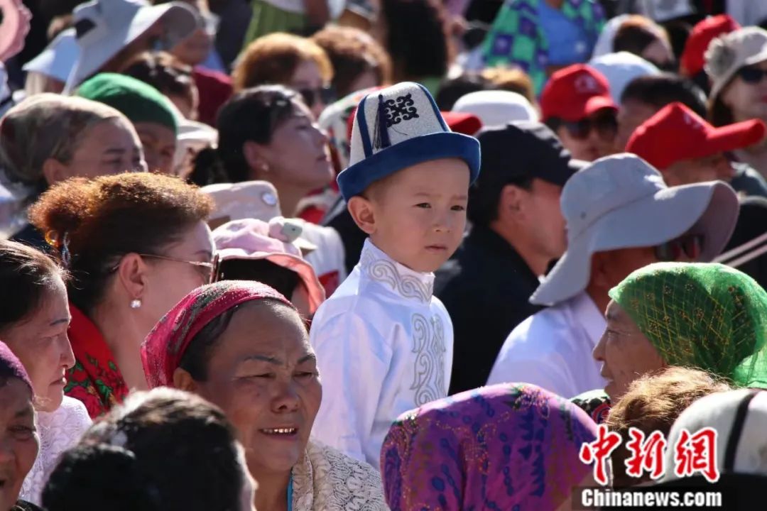 第九屆瑪納斯國際文化旅遊節上,《瑪納斯》說唱表演吸引眾(zhong) 多柯爾克孜族民眾(zhong) 觀看。苟繼鵬 攝