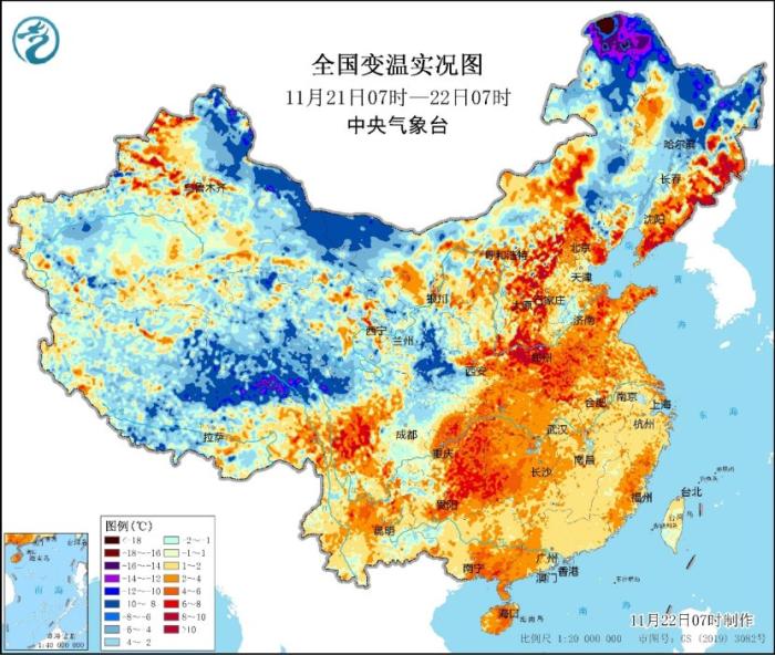 中新網11月22日電 據中央氣象台網站消息,今晨,中東(dong) 部大部地區仍有不同程度的回暖,但這也將是本輪寒潮過程來前最後的溫暖。目前冷空氣已經開始影響黑龍江西北部,漠河今晨氣溫達到-27.3℃,比昨日同時刻降低20℃。中央氣象台今晨繼續發布寒潮、暴雪、大風三個(ge) 預警。其中,未來24小時,內(nei) 蒙古東(dong) 部、黑龍江中東(dong) 部將有大範圍強降雪,需要特別小心!