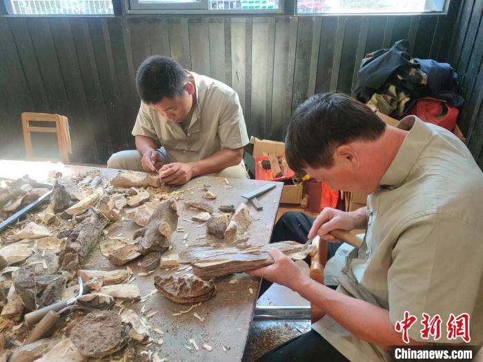 莞香製作技藝國家級非物質文化遺產(chan) 項目代表性傳(chuan) 承人黃歐遵循古法采下的“頭香”。李純 攝