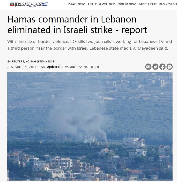 中新網11月23日電 據以色列《耶路撒冷郵報》報道,當地時間21日,在以色列對黎巴嫩進行的空襲中,哈馬斯“卡桑旅”黎巴嫩分支副指揮官卡拉茲(zi) 被炸身亡。