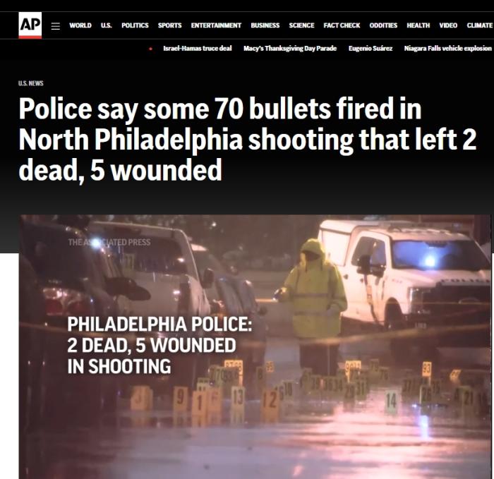 中新網11月23日電 據美聯社報道,當地時間21日,美國費城北部發生槍擊事件。當地警方22日確認,槍手至少發射了70發子彈,導致2名男子喪(sang) 生,另有5人受傷(shang) 。目前,警方還未逮捕嫌疑人。
