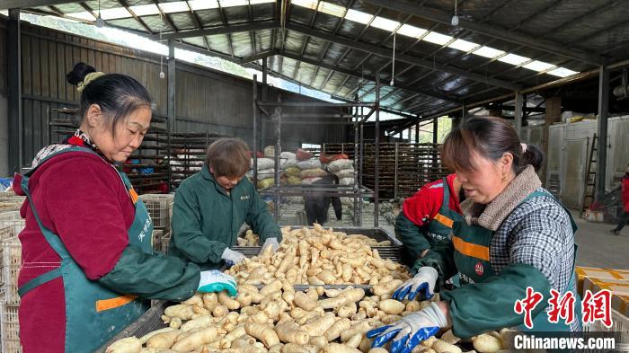 初冬時節,中藥材天麻迎來了豐(feng) 收季。在湖北省宜昌市夷陵區下堡坪鄉(xiang) 九山村,村民周治新安排工人在地裏挑揀完鮮天麻後,拿到他家中用加工設備進行蒸煮、烘幹。多年來,周治新依靠天麻的種植與(yu) 加工,成了村裏的“致富模範”。