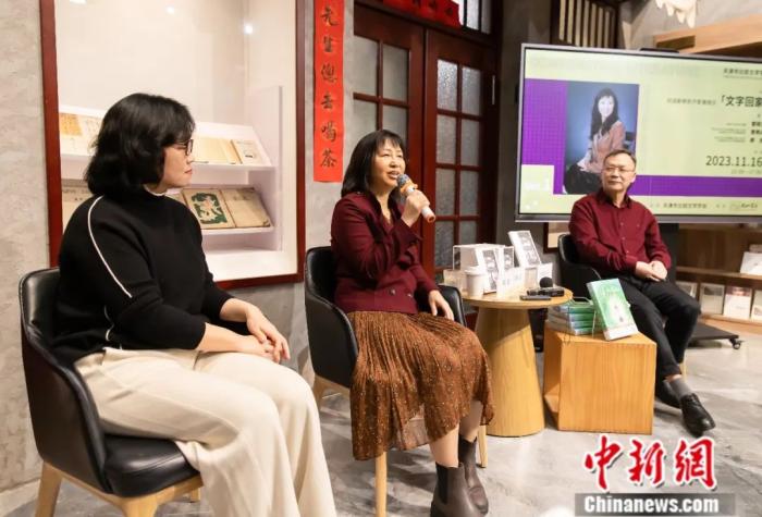 曾曉文(中)參加由天津市比較文學學會(hui) 主辦的“文字回家”主題討論會(hui) 。王在禦 攝