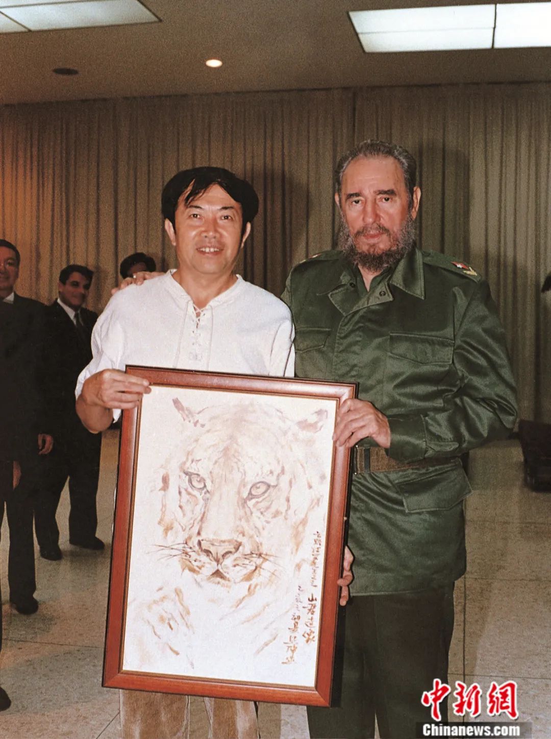 袁熙坤將代表作《山君造像》贈與(yu) 古巴革命領袖菲德爾 卡斯特羅。受訪者供圖