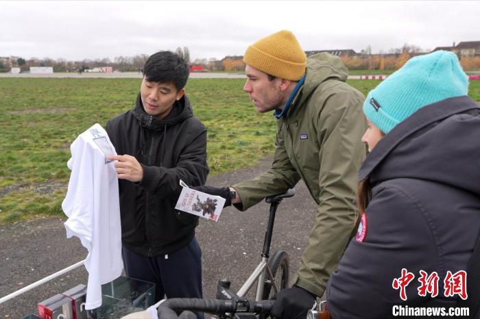 圖為(wei) 選手展示其獲得“車騎將軍(jun) ”主題係列T恤。德國漢文化藝術交流中心供圖