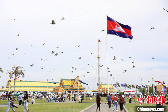 圖為(wei) 送水節首日熱鬧非凡的金邊皇宮廣場。 中新社發 黎海月 攝