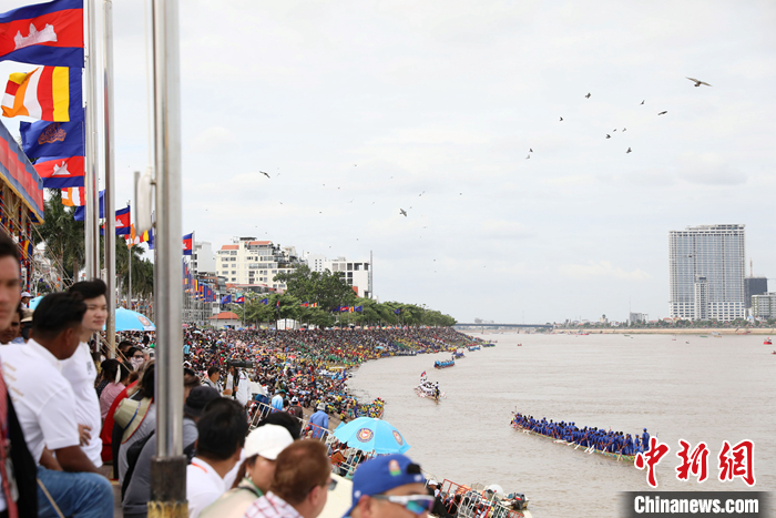 圖為(wei) 送水節首日金邊市大型龍舟比賽盛況。 中新社發 黎海月 攝