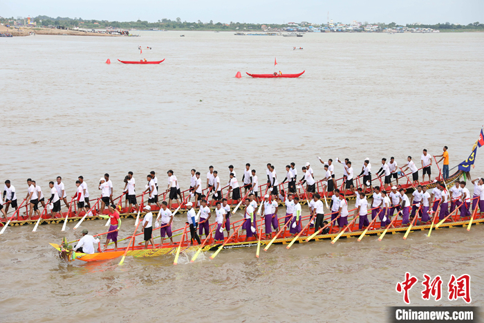 圖為(wei) 送水節首日金邊市大型龍舟比賽。 中新社發 黎海月 攝