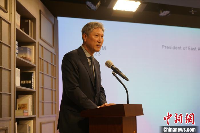 圖為(wei) 韓國東(dong) 亞(ya) 文化中心院長盧載憲致辭。記者 劉旭 攝