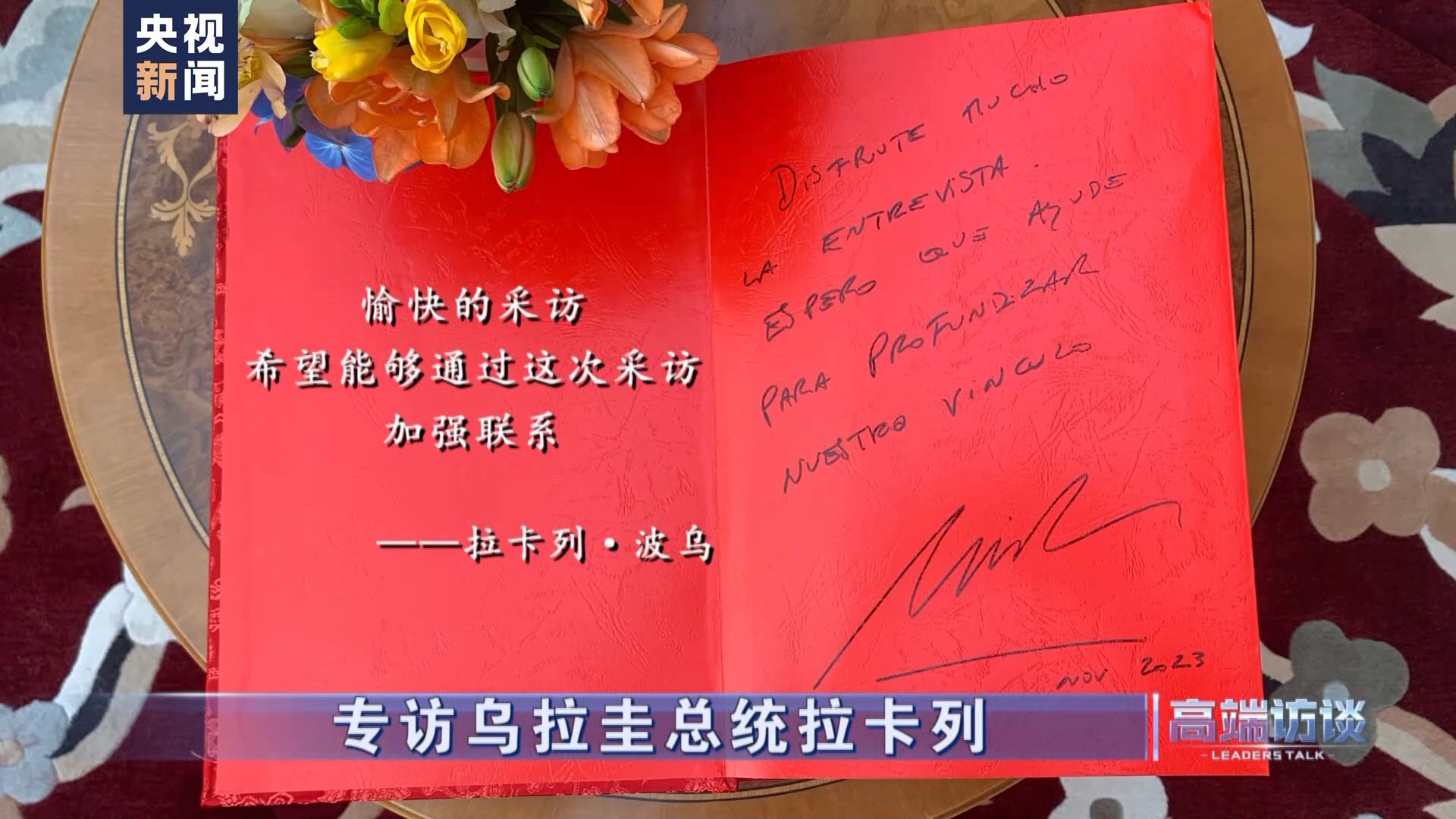 烏(wu) 拉圭總統拉卡列·波烏(wu) 在接受總台專(zhuan) 訪後題詞