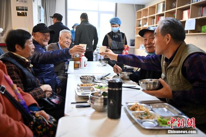 圖為(wei) 11月27日,甘肅省蘭(lan) 州市建蘭(lan) 路街道吳家園社區養(yang) 老服務中心內(nei) ,“老中青”組成“飯搭子”在社區食堂就餐。 中新社記者 九美旦增 攝