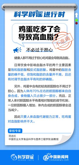 中新網11月27日電 隻要人體(ti) 血脂代謝能力正常,吃雞蛋對血脂影響並不大。日常飲食中影響血脂水平的兩(liang) 個(ge) 主要因素是飽和脂肪酸和反式脂肪酸。雞蛋中的脂肪含量的確不低,但飽和脂肪的含量並不高,且還有對調節血脂水平有利的卵磷脂。(來源:@科學辟謠 @中國新聞網 )