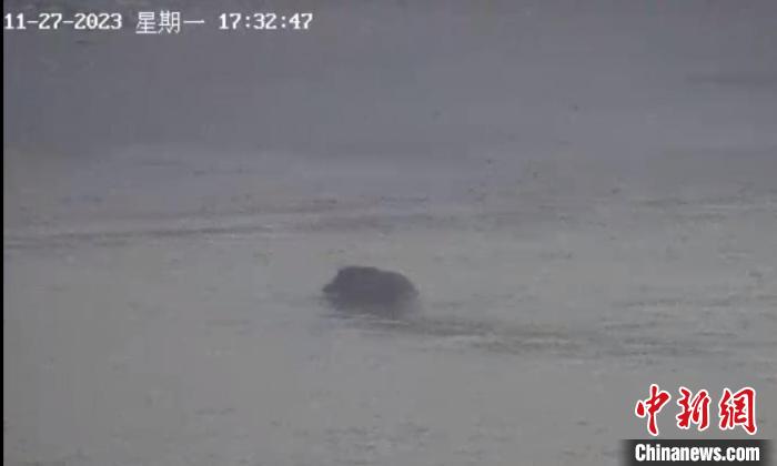中新網南京11月28日電 (記者 朱曉穎)27日下午17時20分,南京海事局交管中心值班人員在通過長江三橋上的攝像頭例行巡查時,意外地發現江麵上有一大型動物在遊泳。