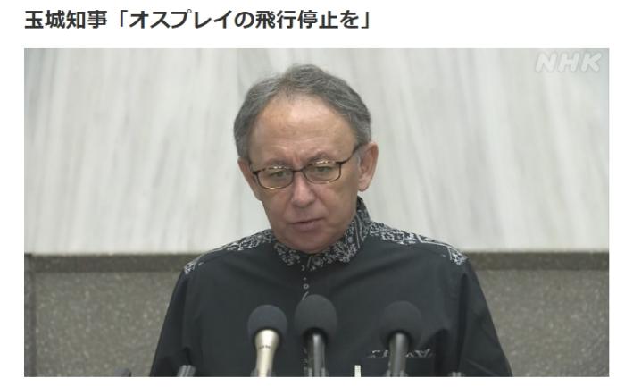 玉城表示,“正因沒有正視‘魚鷹’的危險性,才釀成了如此嚴(yan) 重的事故,實在令人遺憾”,他強調目前非常擔心“魚鷹”在民用區域和民用機場起降成為(wei) 常態,呼籲駐日美軍(jun) 立即停飛“魚鷹”,直至安全問題徹底解決(jue) 。