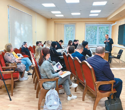 中國學者在俄羅斯中國國際學校給學生們(men) 做講座。