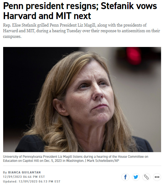 報道指出,馬吉爾是美國首個(ge) 因“反猶爭(zheng) 議”辭職的高校校長。