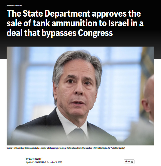 報道稱,美國國務院表示,美國務卿布林肯確定出於(yu) 維護美國國家安全利益的考慮,“存在緊急情況,需要立即出售這批彈藥”。美國務院隨後於(yu) 8日晚間向國會(hui) 通報了此次緊急出售事宜。