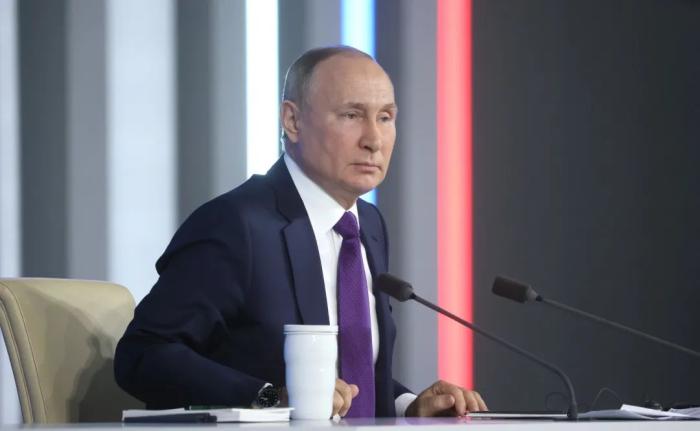 資料圖:2021年12月,普京在持續近4小時的年度記者會(hui) 上回答了55個(ge) 問題,涉及俄羅斯內(nei) 政、中俄關(guan) 係、俄烏(wu) 關(guan) 係等。圖片來源:俄羅斯克裏姆林宮網站