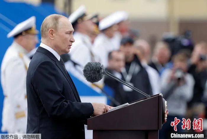 資料圖:2022年7月31日,俄羅斯總統普京在俄海軍(jun) 節閱兵式上發表講話。