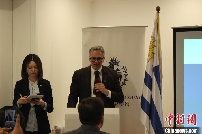 烏(wu) 拉圭駐華大使費爾南多·盧格裏斯發言。 蘇婧欣 攝