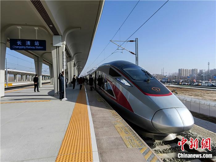12月8日,濟鄭高鐵全線通車。圖為(wei) 在濟南長清站始發前往鄭州的複興(xing) 號列車。沙見龍 攝