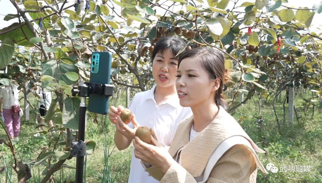 圖為(wei) 主播在獼猴桃園內(nei) 直播。武功縣融媒體(ti) 中心 供圖