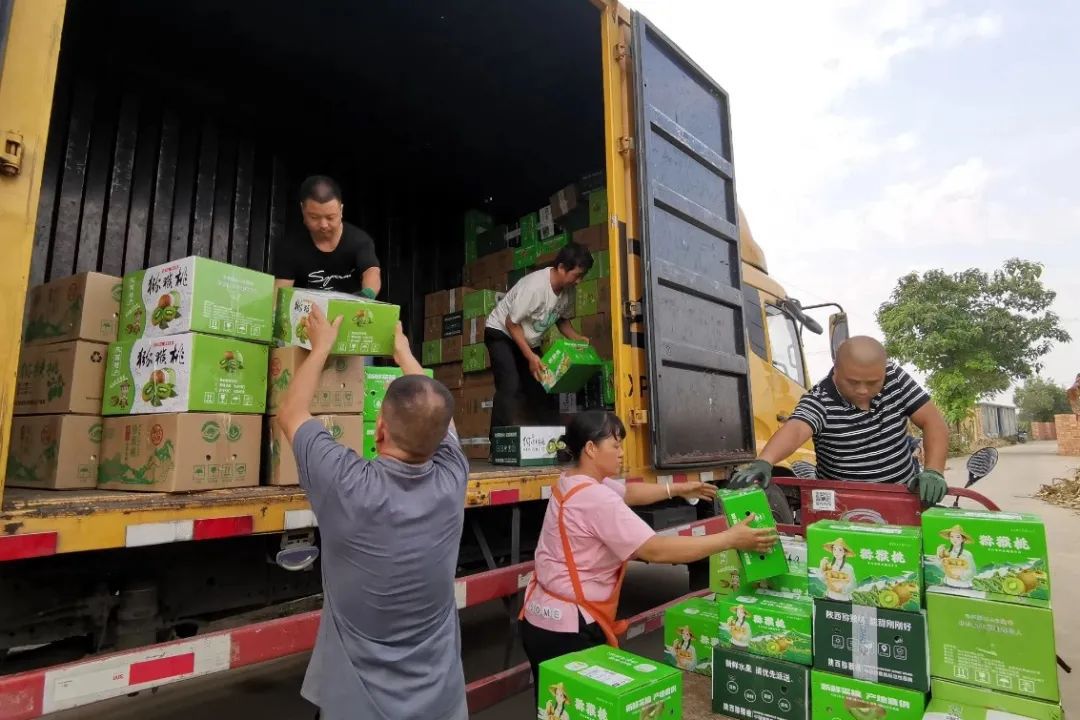 圖為(wei) 工人們(men) 正在將獼猴桃裝車運輸。武功縣融媒體(ti) 中心 供圖