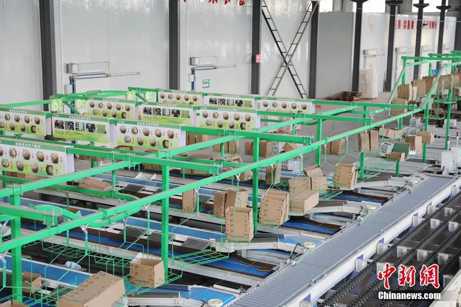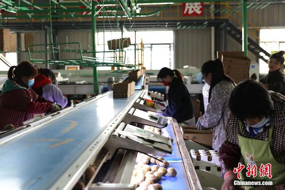 圖為(wei) 工廠內(nei) 的獼猴桃裝箱流水線。石芙蓉 攝