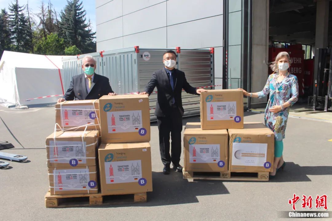 中國駐德大使館接到來信後緊急調集物資,中國各界紛紛伸出援手——浙江一家醫藥企業(ye) 當即決(jue) 定免費贈藥,南京市政府同時籌得幾萬(wan) 隻口罩和上百套防護服,通過中國專(zhuan) 機運往德國。2020年4月21日,中國駐德大使館工作人員自柏林驅車700公裏,將物資交到了海德堡市政府和托馬斯·拉貝的手中。