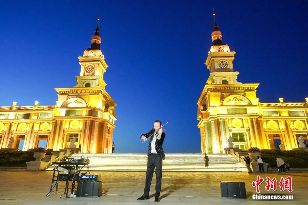 9月13日,黑龍江省首屆中俄地方文化藝術季街頭路演在音樂(le) 長廊舉(ju) 行。演奏者用小提琴演奏《如願》。中俄音樂(le) 文化交流廣泛而深入。趙宇航攝