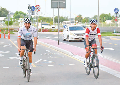 兩(liang) 名騎行愛好者在“迪拜騎行”活動中。