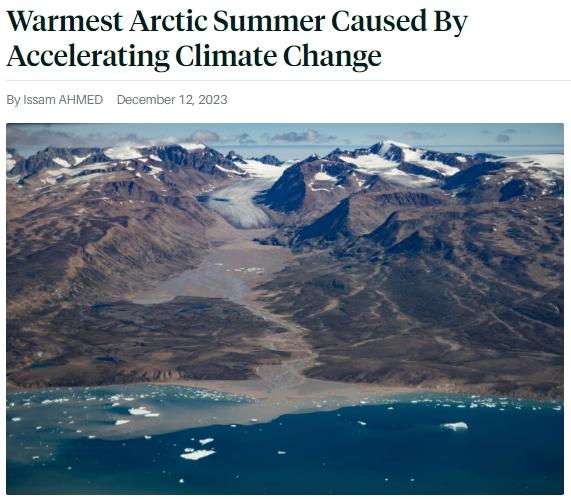 據法新社報道,美國國家海洋和大氣管理局(NOAA)發布的《2023年北極報告單》顯示,2023年夏季,北極的地表溫度至少是1900年以來,或者說逾百年來的最高水平。
