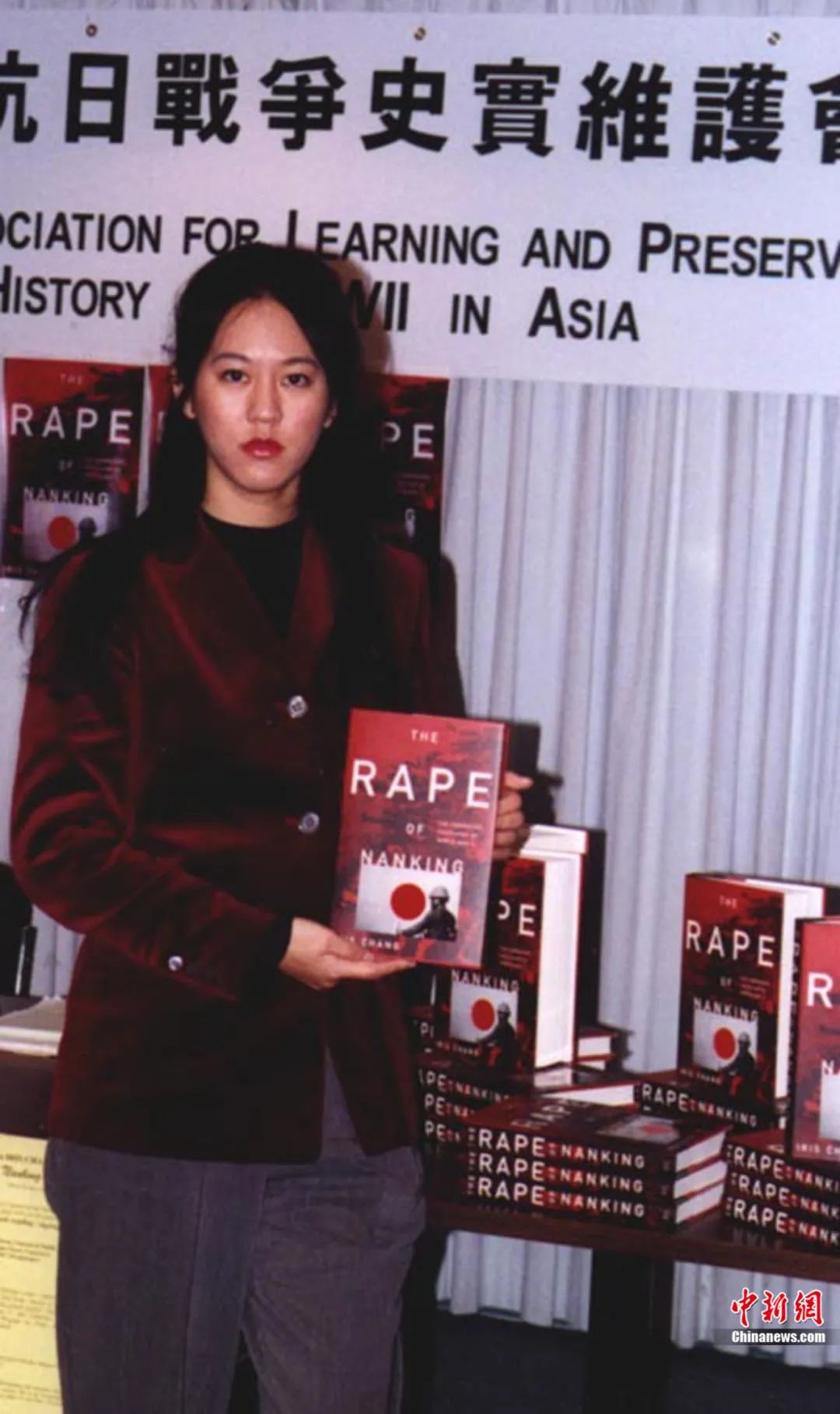美國華裔作家張純如與(yu) 她的著作《南京暴行——被遺忘的大屠殺》。鍾欣 攝