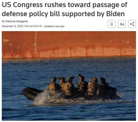 與(yu) 此同時,美國總統拜登12日表示,強烈支持國會(hui) 參眾(zhong) 兩(liang) 院迅速在年底前通過這份2024財年《國防授權法案》。