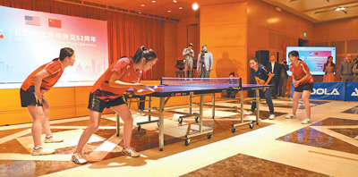 本報華盛頓12月14日電 (記者李誌偉(wei) )當地時間12月13日晚,中國駐美國大使館舉(ju) 辦活動,紀念中美“乒乓外交”52周年。中國駐美國大使謝鋒在致辭中回顧了上個(ge) 月成功舉(ju) 行的中美元首會(hui) 晤,強調以“乒乓外交”為(wei) 代表的人文交流對中美關(guan) 係的曆史、現在與(yu) 美好未來的重大意義(yi) 。