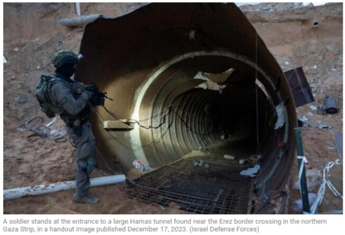 以色列國防軍(jun) 表示,這條地道長約4公裏,部分地區深約50米,寬度足以讓車輛通過,其中一個(ge) 豎井距埃雷茲(zi) 過境點僅(jin) 400米。