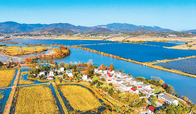 安徽省蕪湖市繁昌區平鋪鎮岱湖灘漁光互補光伏電站,水上發電、水下養(yang) 殖,助力節能減排。