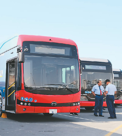 中國品牌的電動車停放在COP28的擺渡車停車場。COP28開幕以來,中國品牌的電動車為(wei) 本次氣候大會(hui) 提供服務,增添了一道靚麗(li) 的風景線。