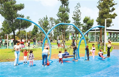 埃塞俄比亞(ya) 首都亞(ya) 的斯亞(ya) 貝巴河岸綠色發展項目是由中國援助的工程,包括整治城市河道、在河道周邊修建公園和其他公共設施等。圖為(wei) 當地孩子們(men) 在亞(ya) 的斯亞(ya) 貝巴河岸綠色發展項目的兒(er) 童樂(le) 園玩耍。